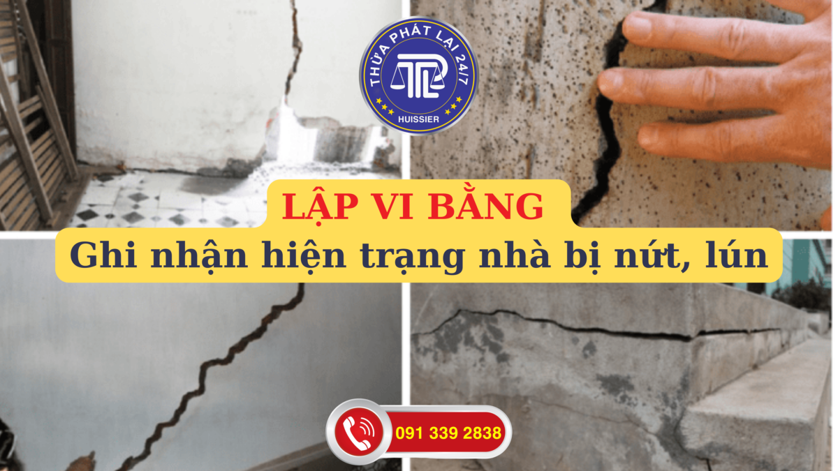 Người bị thiệt hại nên liên hệ Văn phòng Thừa phát lại để lập vi bằng, ghi nhận chi tiết hiện trạng các vết nứt, hư hỏng. Vi bằng sẽ mô tả rõ vị trí, kích thước (chiều dài, chiều rộng), mức độ của các vết nứt và các thiệt hại khác tại thời điểm ghi nhận.
