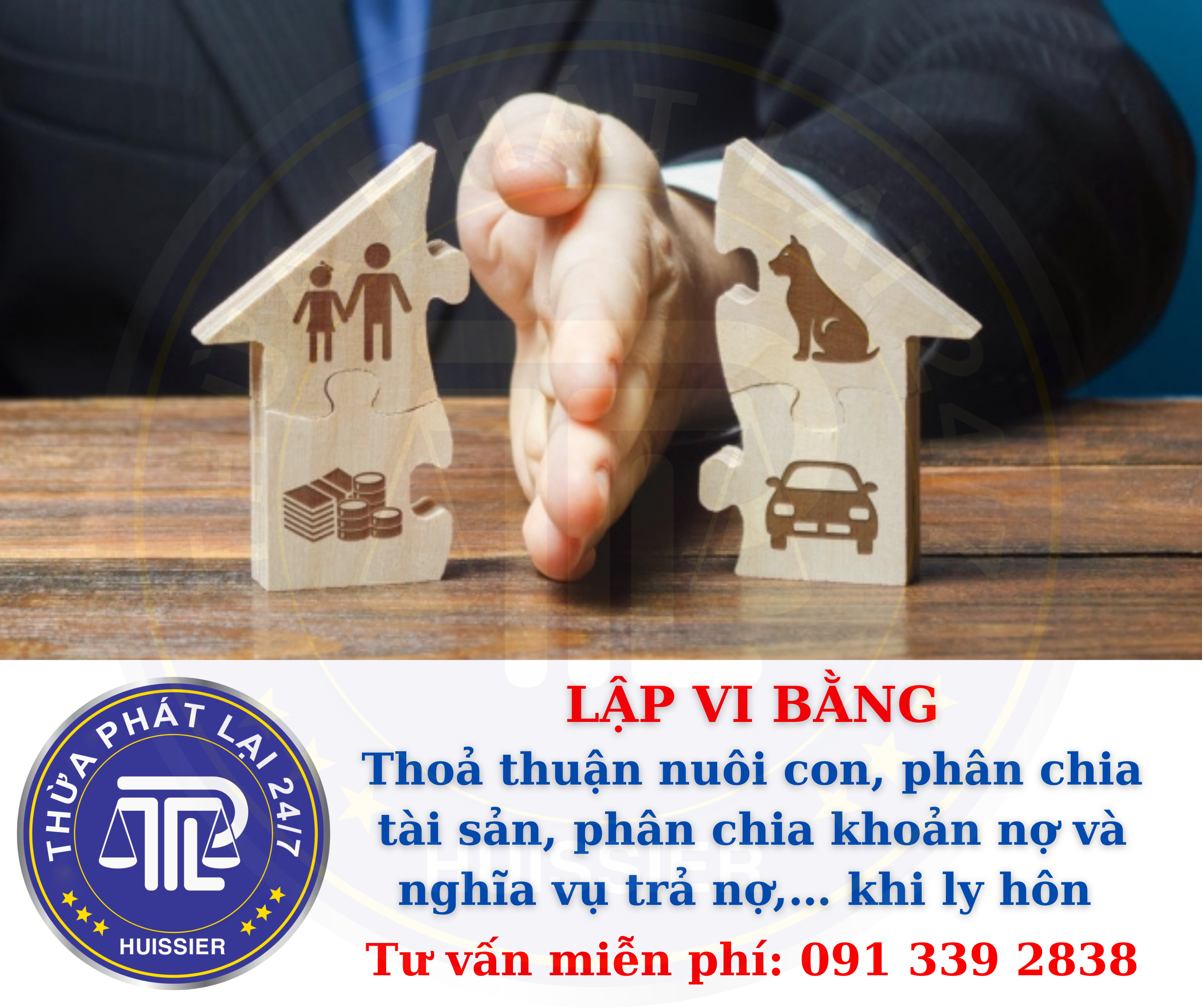 Lập vi bằng ghi nhận thoả thuận nuôi con, phân chia tài sản, phân chia khoản nợ và nghĩa vụ trả nợ,… khi ly hôn